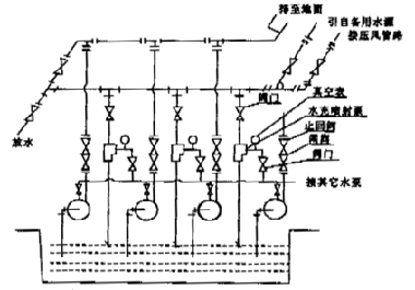 單臺水泵的安裝,每臺噴射泵只對該臺水泵進(jìn)行吸氣吸上引水。