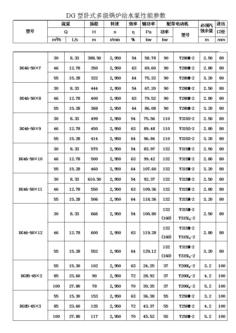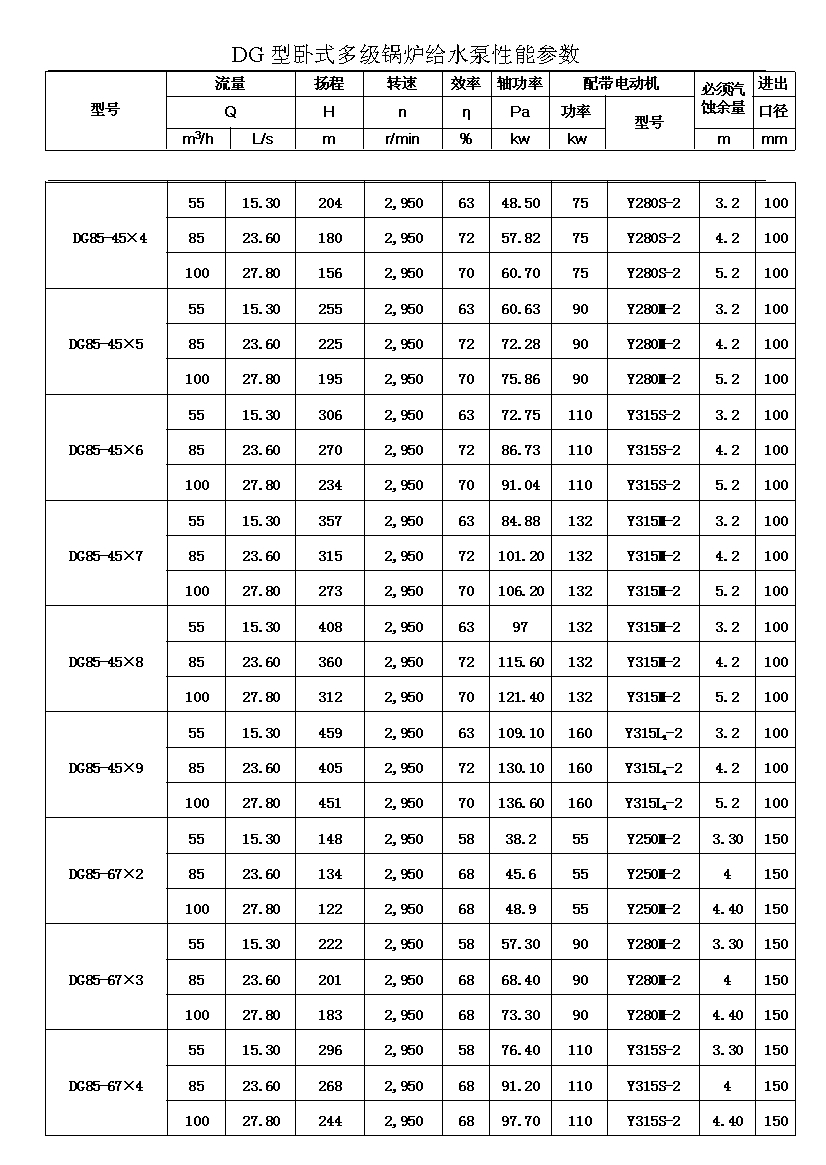 DG型鍋爐給水泵是臥式單級多吸分段式離心水泵。供吸送清水(含雜質(zhì)量小于1%,顆粒度小于0.1mm)及物理化學(xué)性質(zhì)類似于清水的液體之用。輸送介質(zhì)溫度不高于105攝氏度,適用于小型鍋爐給水及城鎮(zhèn)供水等場合。DG型鍋爐給水泵屬國家經(jīng)委、機(jī)電部聯(lián)合推廣的節(jié)能產(chǎn)品,用來代替GC型鍋爐給水泵,其效率平均比GC型高8%,敬請用戶優(yōu)先選用。