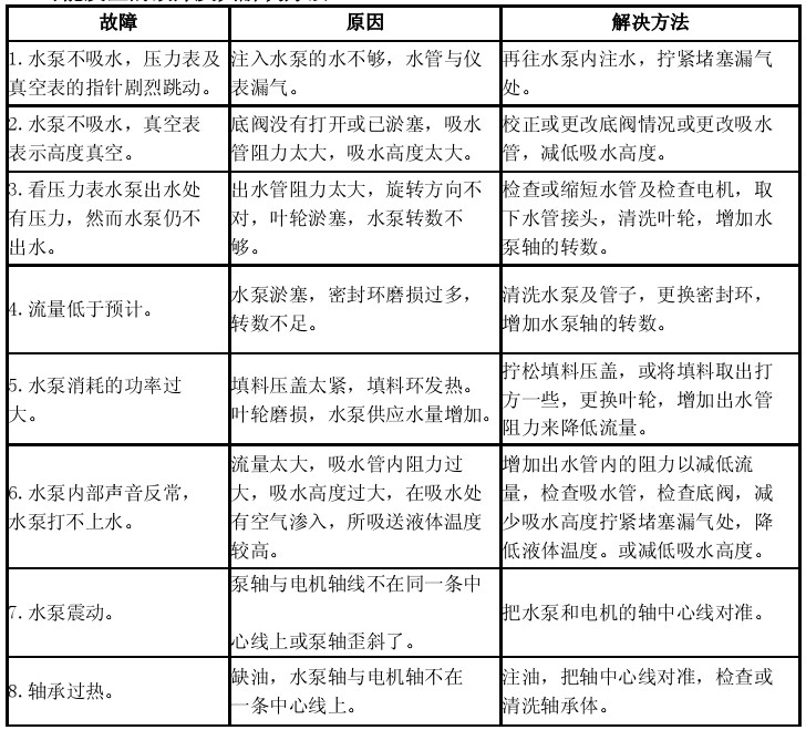 (8)當(dāng)長(zhǎng)期停止使用水泵時(shí),水泵應(yīng)拆卸開(kāi),再將另件上的水擦干,并在滑動(dòng)面處涂上防銹油,妥善保存。