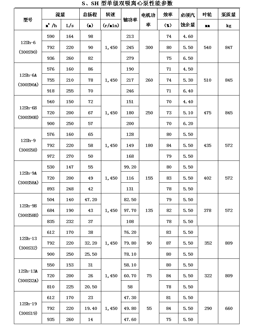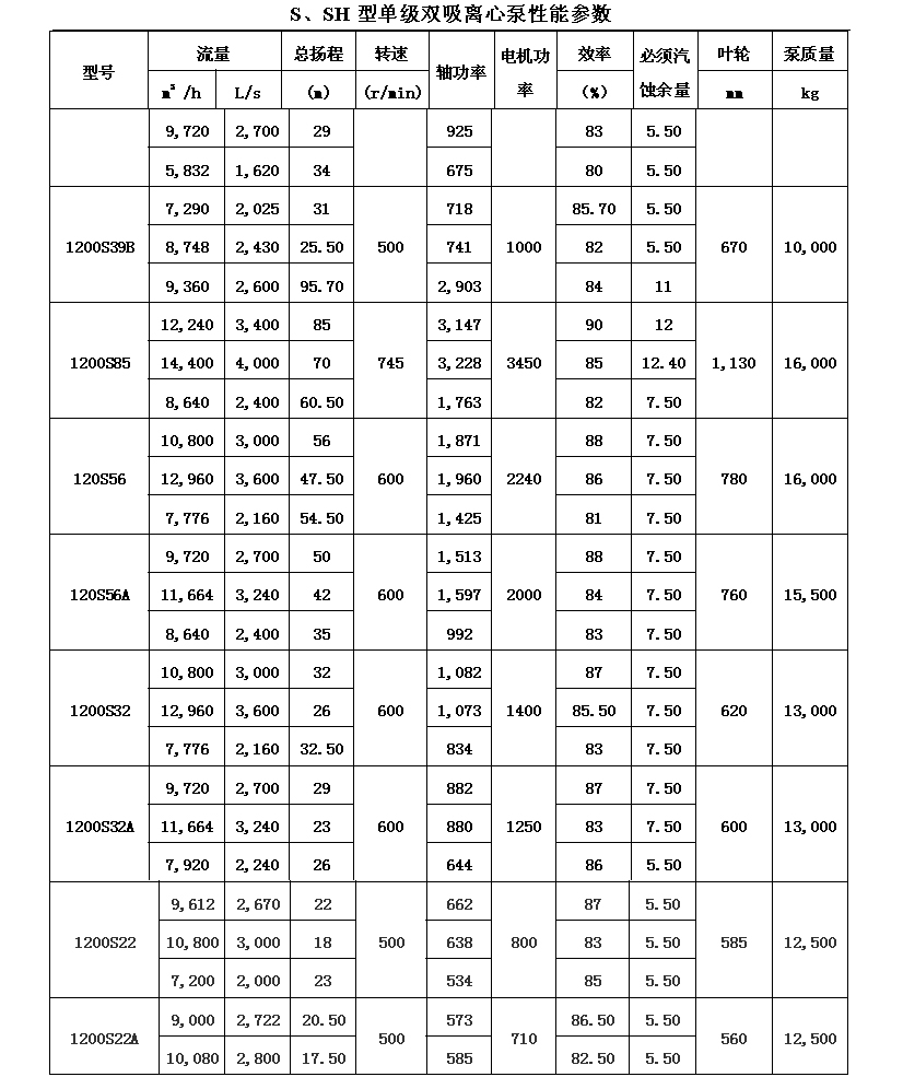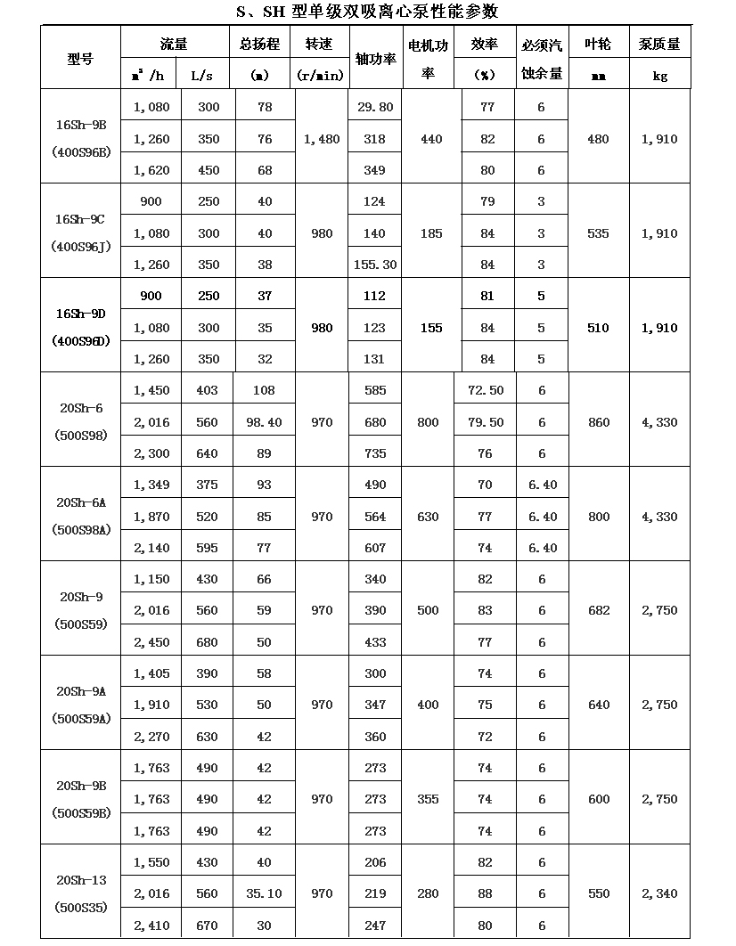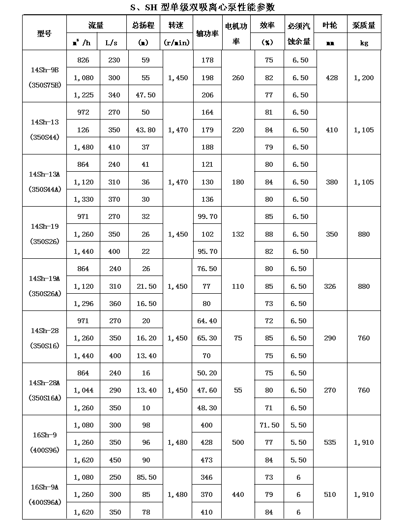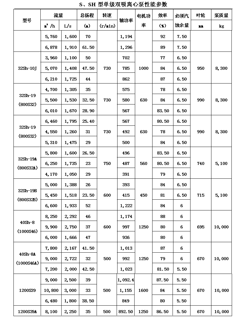 吸離心泵、S,SH型單級(jí)雙吸泵殼中開(kāi)之離心泵,供抽送清水或物理化學(xué)類似于水的其它液體之用。被輸送液體溫度不得高于80℃。